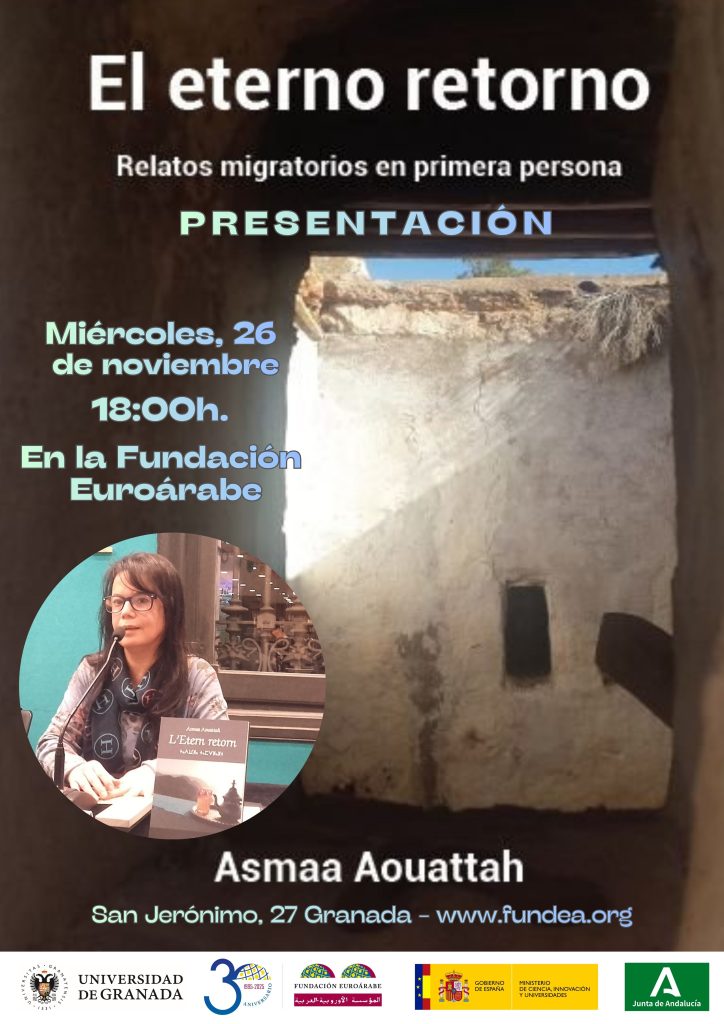 El próximo miércoles, 26 de noviembre, a las 18:00h., Fundación Euroárabe recibe a la escritora Asmma Aouattah que nos presenta «El eterno retorno».