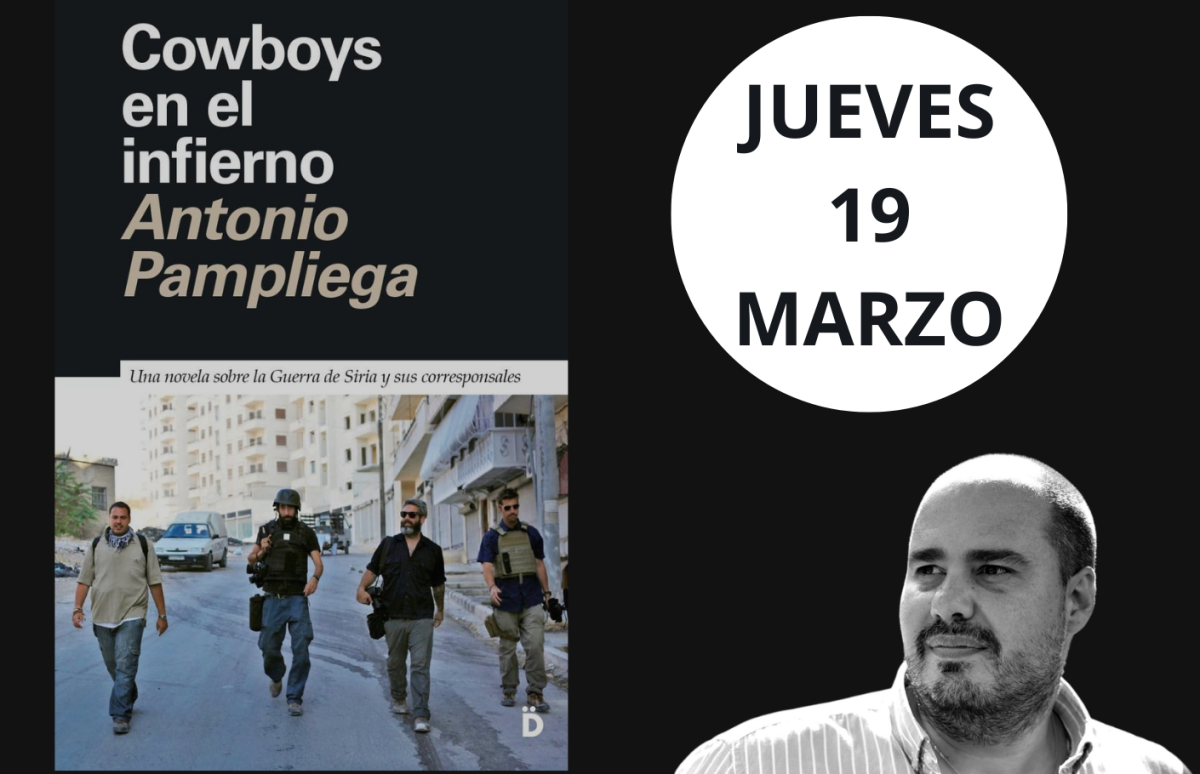 La Fundación Euroárabe acogió, el pasado jueves 19 de marzo (2026), la presentación de la novela ‘Cowboys en el infierno’ (Editorial Diéresis, 2025) de Antonio Pampliega, periodista que cuenta con varios galardones nacionales e internacionales como el Premio Luchetta (2020), el Premio Nacional de Periodismo Juan Andrés García (2015) y el Premio de La Buena Prensa (2015, 2019 y 2020). Presentó el acto el secretario ejecutivo de la Fundación Euroárabe Antonio Sánchez Ortega y moderó Jusaima Moaid-Azm Peregrina.
