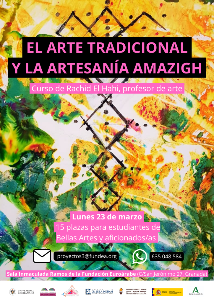 El lunes 23 de marzo Rachid El Hahi, Profesor de Estética, Artes y Crítica Contemporánea en la Universidad Internacional de Marrakech, impartirá una formación sobre ‘El arte tradicional y la artesanía amazigh: fuente de inspiración para una expresión contemporánea en abstracción simbólica’ en la Sala Inmaculada Ramos de la Fundación Euroárabe.