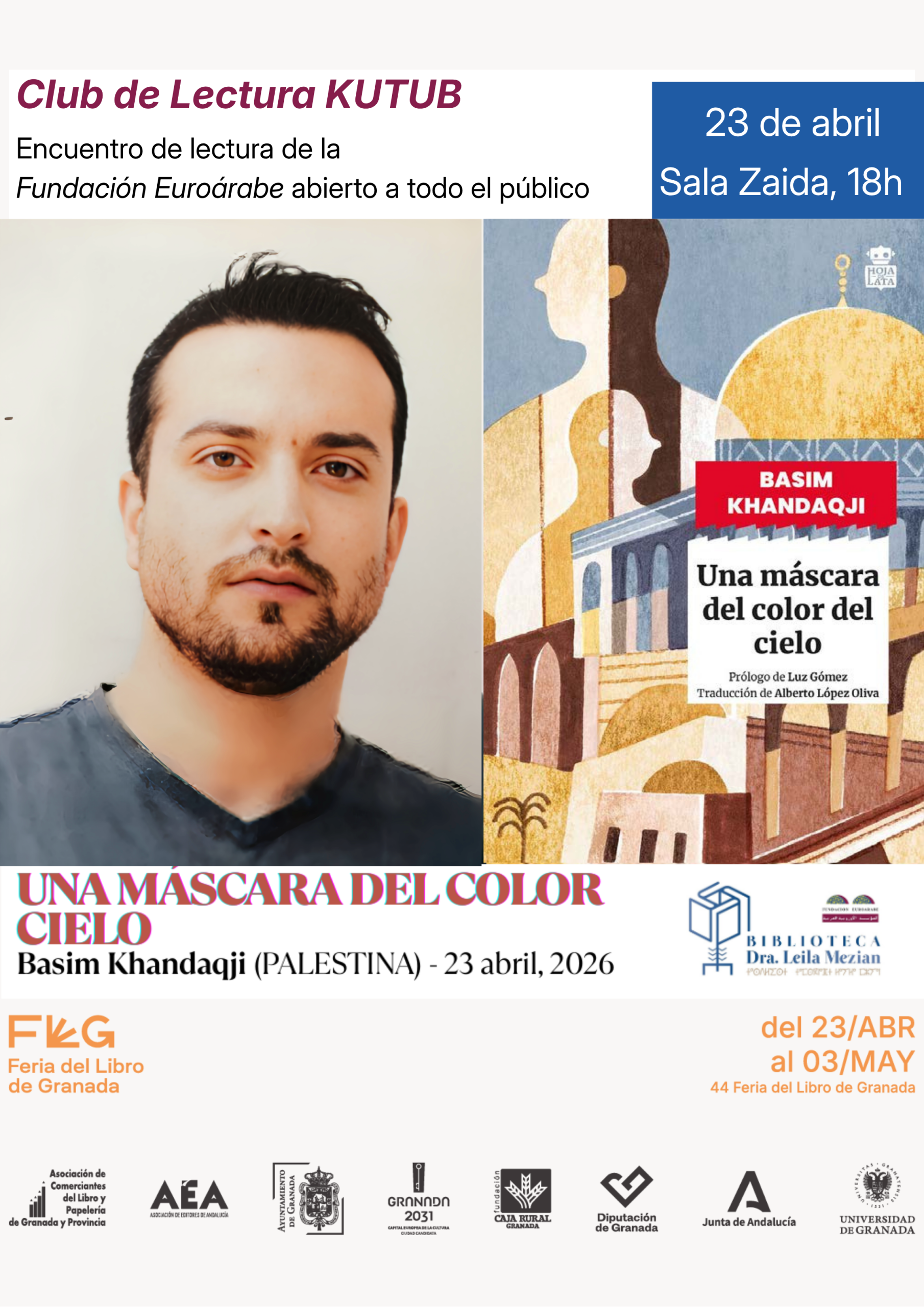 Con motivo del Día Internacional del Libro, la Fundación Euroárabe invita a todos amantes de la literatura a una sesión especial de su Club de Lectura KUTUB. En esta ocasión, el encuentro abandona su formato habitual para abrirse a toda la ciudadanía en un encuentro de debate que tendrá lugar el 23 de abril a las 18h. en la Sala Zaida de la Feria del Libro de Granada.